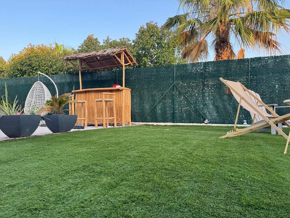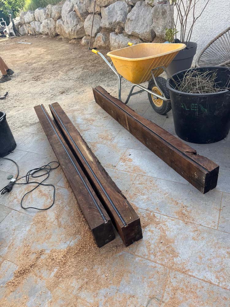 Pour ce projet à Villeveyrac, nous avons créé un coin exotique autour de la piscine, apportant une ambiance chaleureuse et dépaysante. Par ailleurs, nous avons repris le terrain de pétanque en intégrant un éclairage innovant directement dans les poutres, offrant ainsi une mise en lumière originale et fonctionnelle pour profiter du terrain même en soirée.