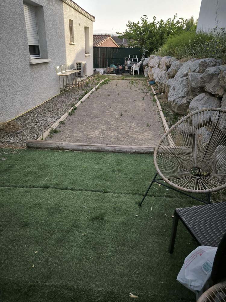 Aménagement autour d’une piscine et reprise d’un terrain de pétanque.